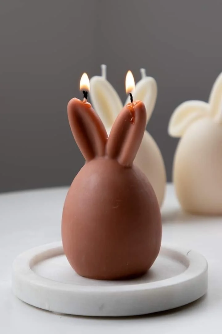 A modern Easter candle designed for minimal homes. Handmade to order in New Zealand, these sculptural bunny candles are unscented and created as a decorative statement piece for Easter styling or gifting.
